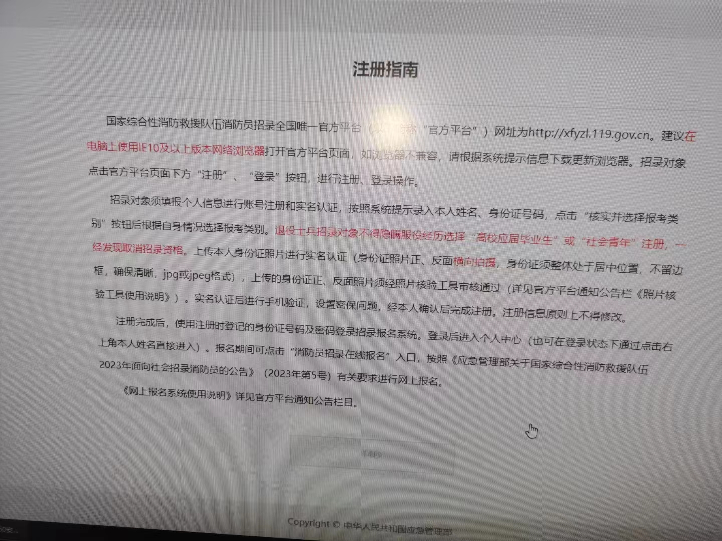 點(diǎn)擊進(jìn)入后按下圖順序先注冊,再登錄。開始按耍求上傳個人信息。報(bào)名分三個端口,1、退伍軍人。2、高校畢業(yè)生。3、社會青年。學(xué)員可認(rèn)真看招聘公告,根據(jù)公告標(biāo)誰要求選自己符合對應(yīng)的標(biāo)準(zhǔn),主要是年齡和學(xué)歷。根據(jù)自己的戶籍地點(diǎn)擊報(bào)名省份和所在城市。確認(rèn)無誤后在點(diǎn)擊申請發(fā)送,報(bào)名只有一次修改機(jī)會!高中學(xué)歷22歲以下,大專學(xué)歷24歲以下,本科26歲以下。政審?fù)ㄟ^均可報(bào)名!