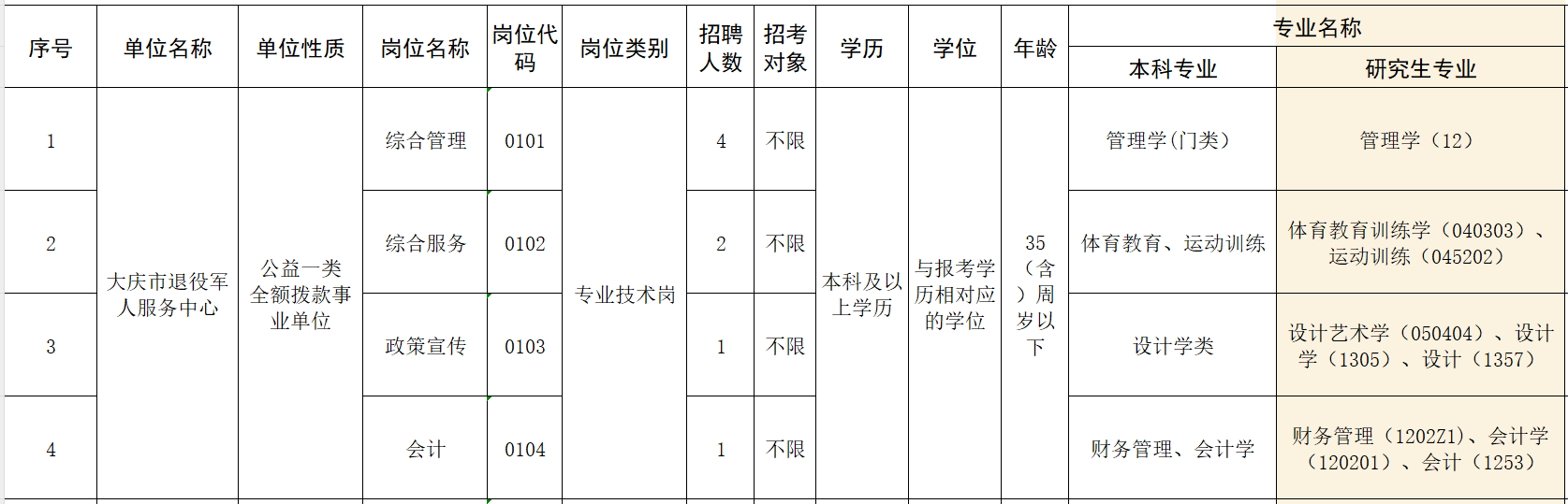 為加強(qiáng)大慶市退役軍人事務(wù)局所屬事業(yè)單位人才隊(duì)伍建設(shè),滿足人員配備要求,依據(jù)事業(yè)單位公開(kāi)招聘有關(guān)規(guī)定,面向社會(huì)公開(kāi)招聘工作人員,現(xiàn)將有關(guān)事宜公告如下: