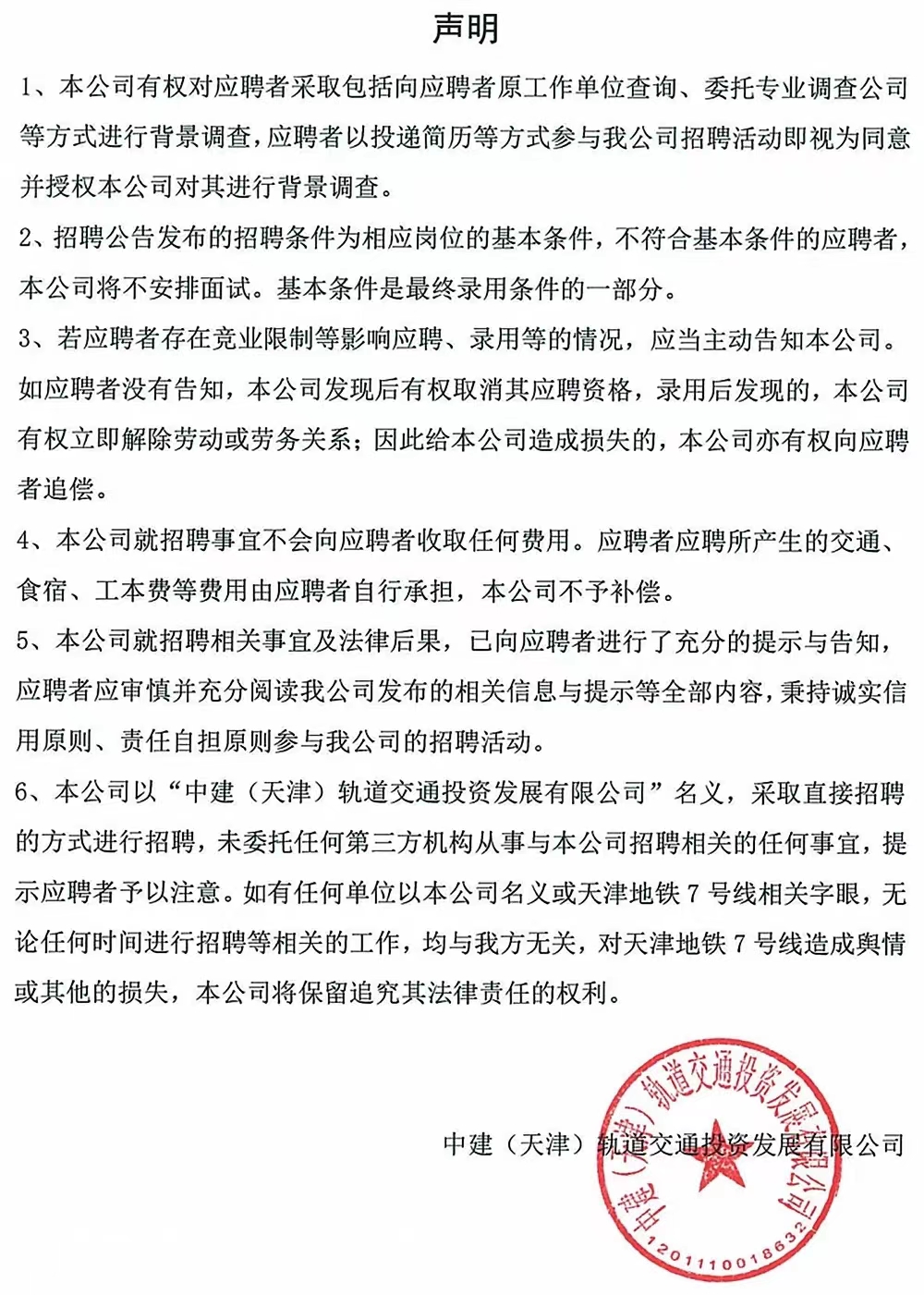 5.公司未授權(quán)委托任何招聘機(jī)構(gòu),不收取應(yīng)聘人員任何費(fèi)用。