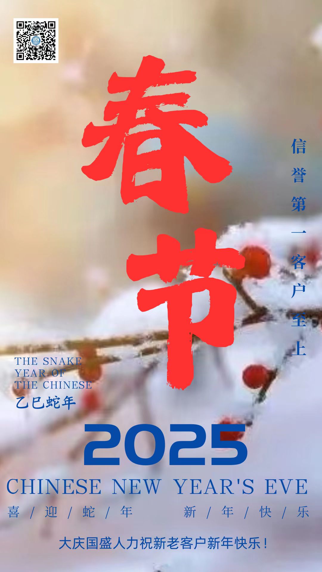 鞭炮聲聲,喚醒了沉睡的新年;瑞雪飄飄,帶來了新春的祝福。在這辭舊迎新的美好時(shí)刻,大慶市國(guó)盛人力資源管理有限公司向一直以來支持和信任我們的客戶、合作伙伴,以及每一位關(guān)注我們的朋友,致以最誠(chéng)摯的新年祝福!